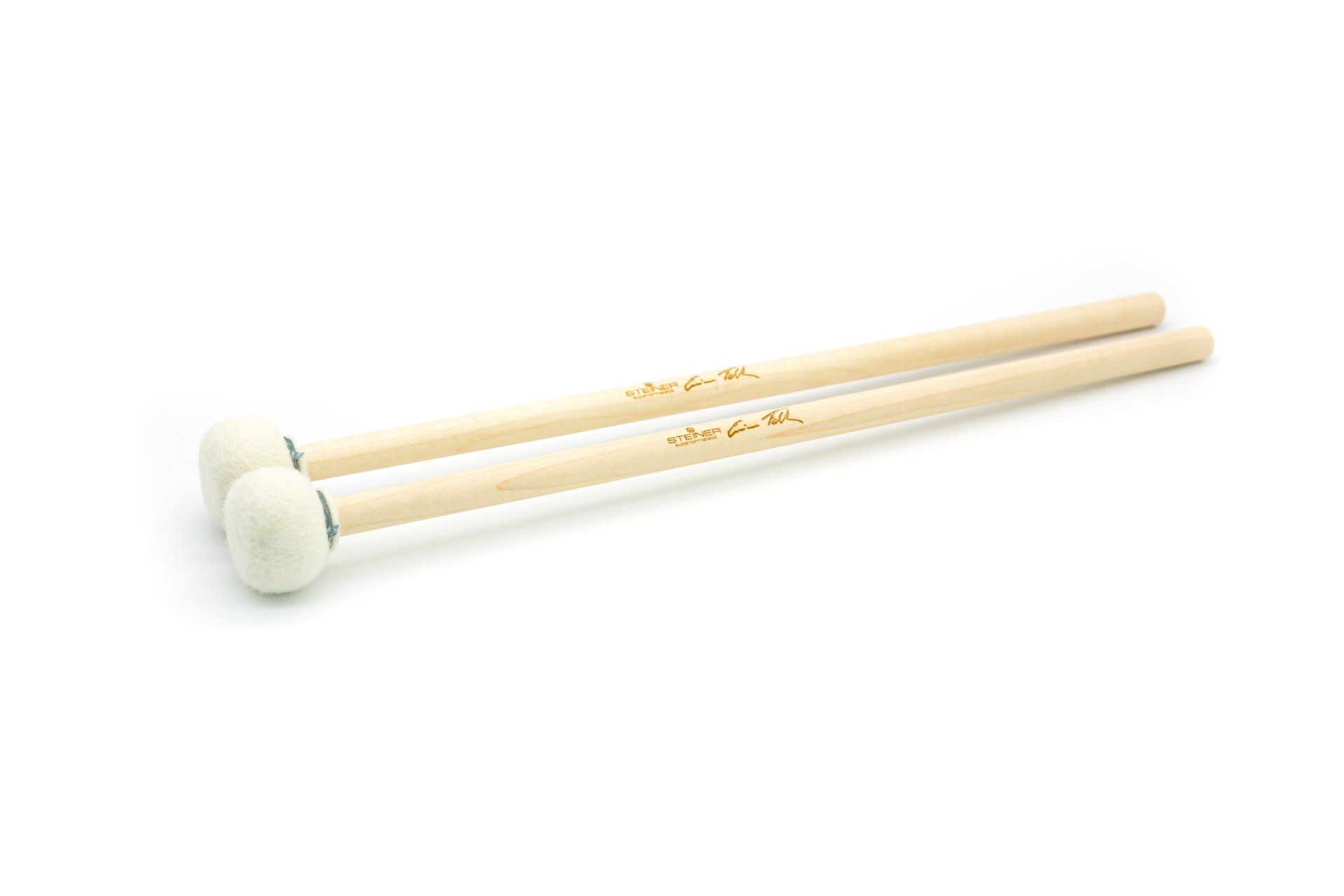 The variant with special felt wrapping (EF 206 and EF208) gives a substantially darker, less transparent timbre than the leather-wrapped version. This felt is produced exclusively for Steiner Superiormallets.