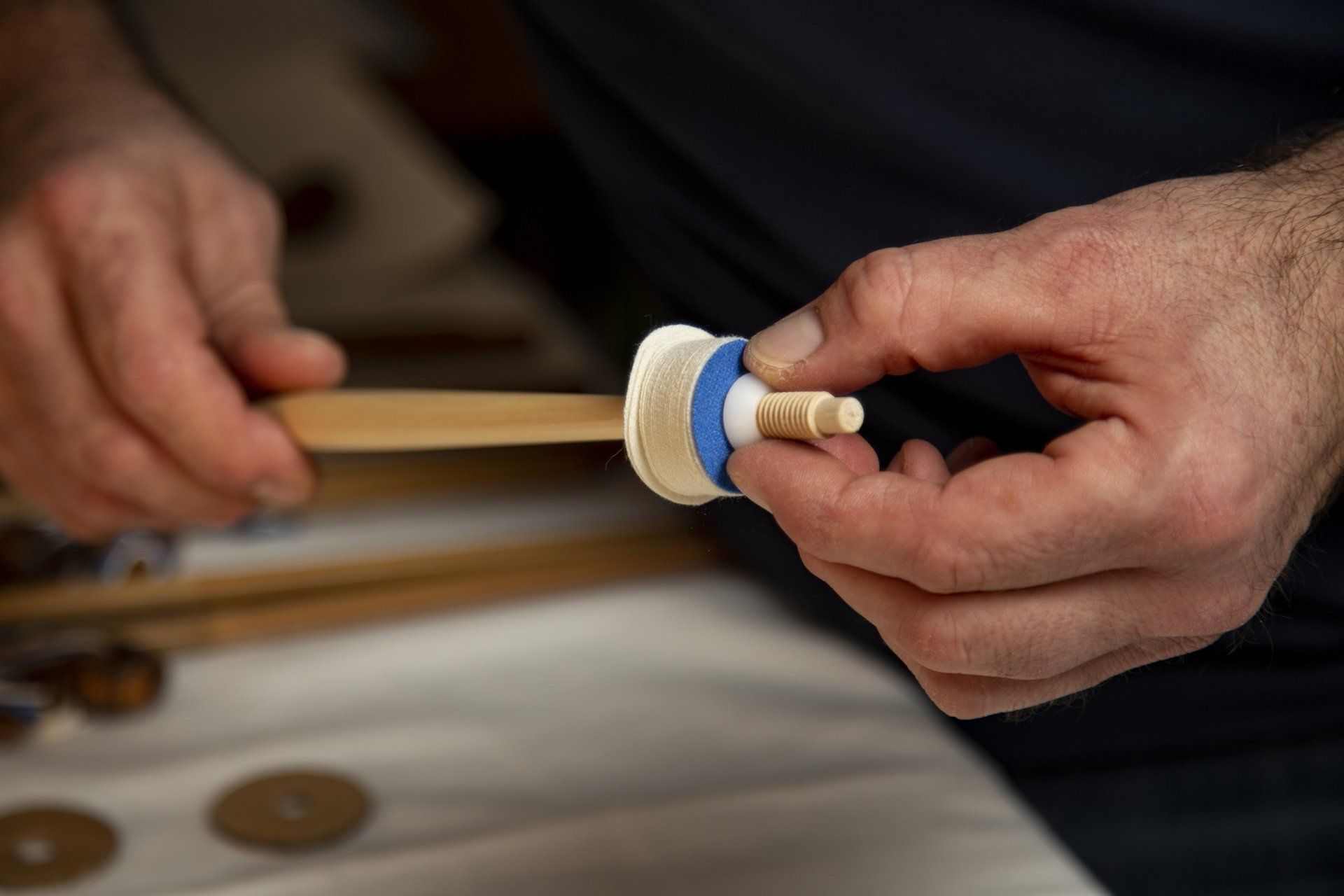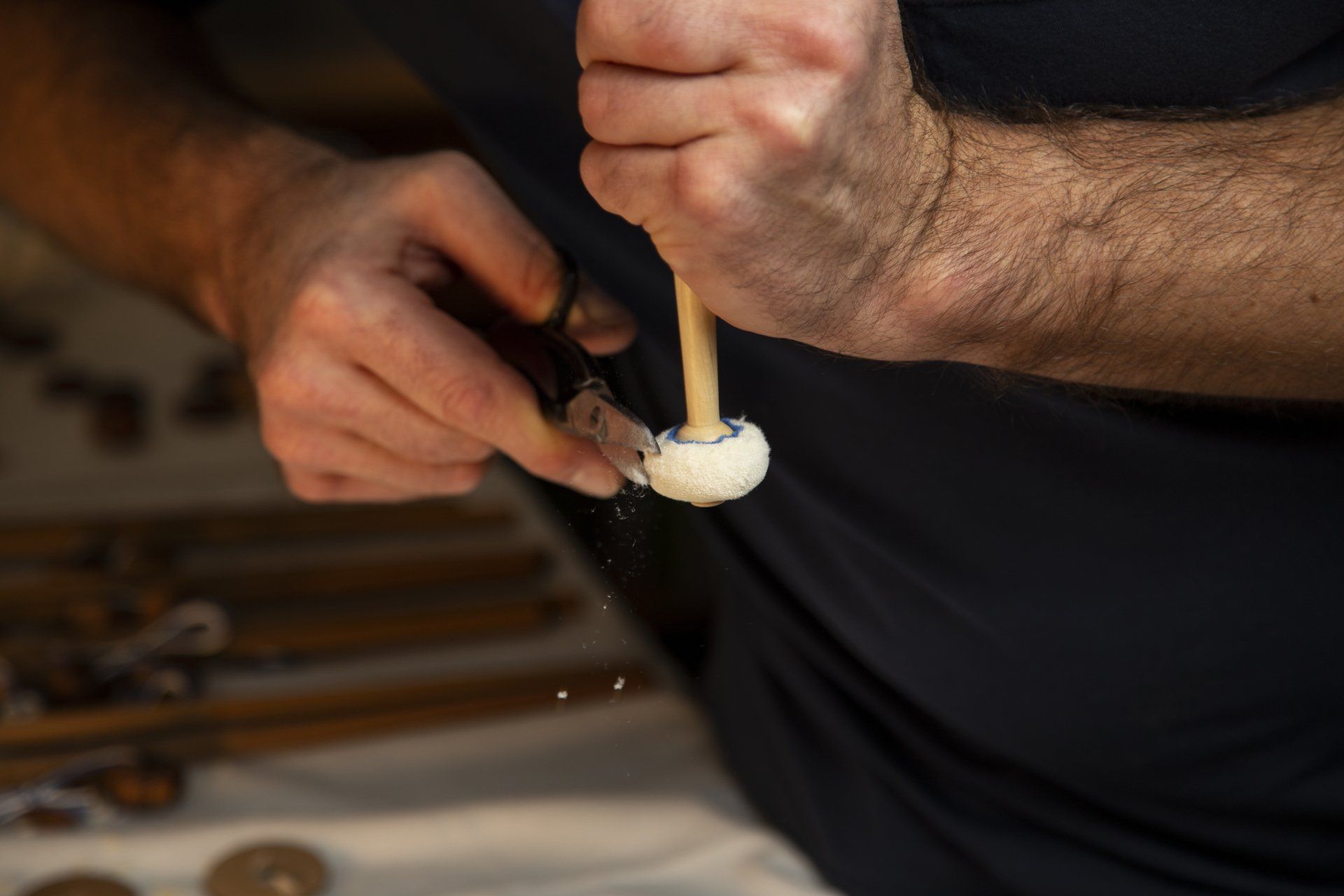 In the first year of my work for the Viennese timpani workshop, I met Benjamin Forster, who at that time was a solo timpanist in the Tonhalle Orchestra Zurich. He also encouraged me to build felt mallets based on German sound ideas and on bamboo sticks. An intense period of developing new models began.